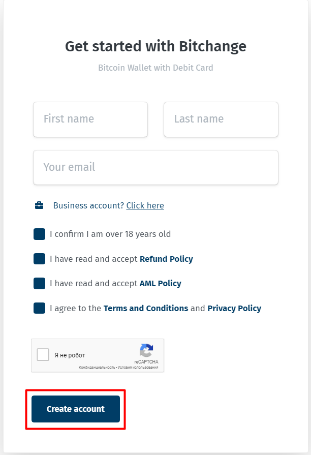 Fill in the fields with your first and last name, and enter your email.Then you need to carefully read and accept all the conditions in order to continue and click on the "Create Account" button.